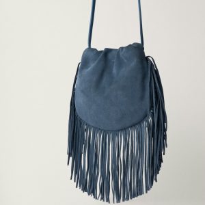 Small Powder Blue Fringe Leather Bag