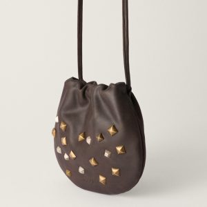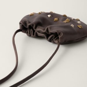 Small Vintage Studded Cocoa Leather Bag
